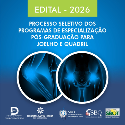 A Especialização Médica em Quadril e Joelho – Serviço Professor Donato D'Ângelo, constitui modalidade de ensino de Pós-graduação Lato Sensu, sob a forma de cursos de especialização, destinada a médicos e caracterizada por treinamento em serviço, em regime de tempo integral não remunerado. São oferecidas 02 (duas) vagas para a especialidade de quadril e 02 (duas) vaga para a especialidade de joelho -  o programa do quadril terá início em 01/04/2026 e o programa do joelho terá início em 01/04/2026.